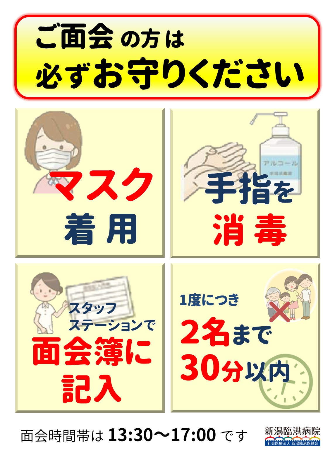 - 面会後、7日以内に面会者が感染症と診断された場合は、必ず病院へご連絡ください